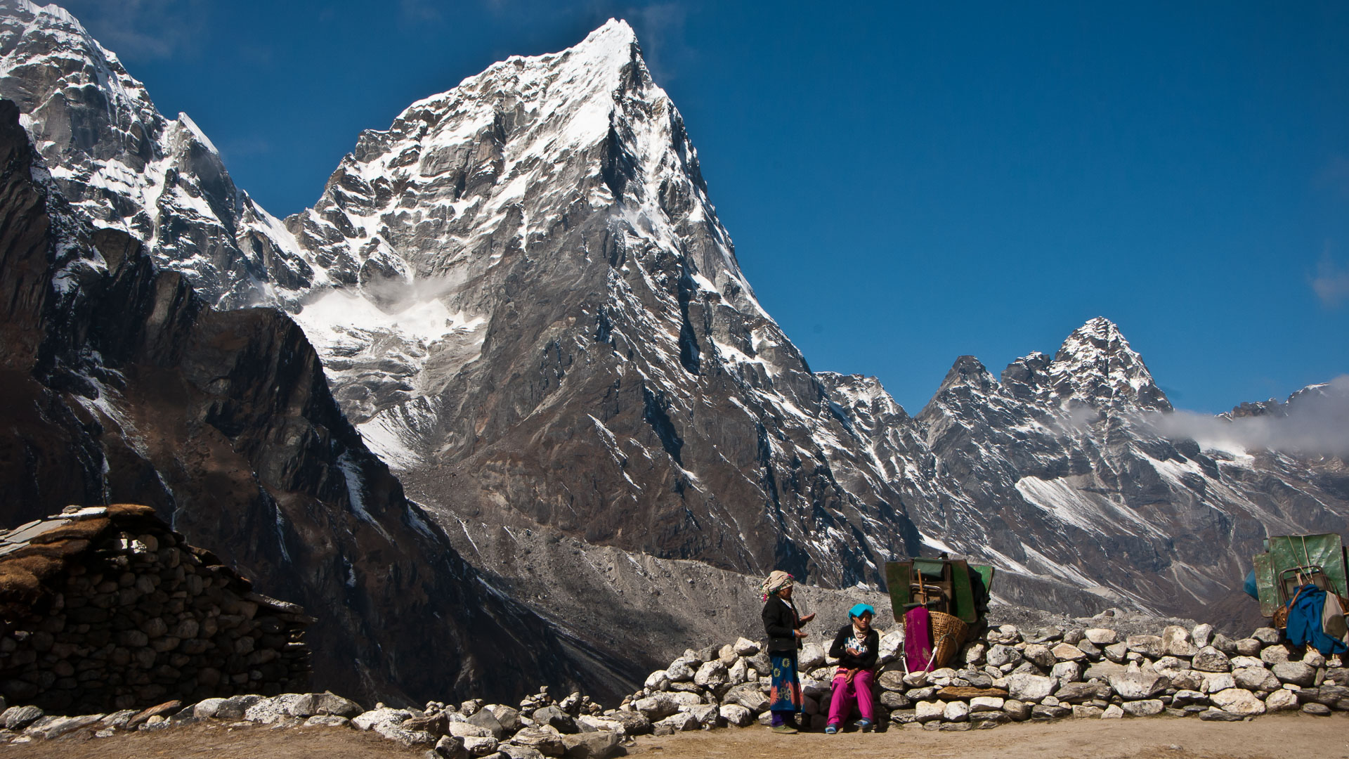 Porters taking a rest: These lady porters are carrying our metal dining tables! They came over later and offered us some of their trail mix in a gesture of friendship.