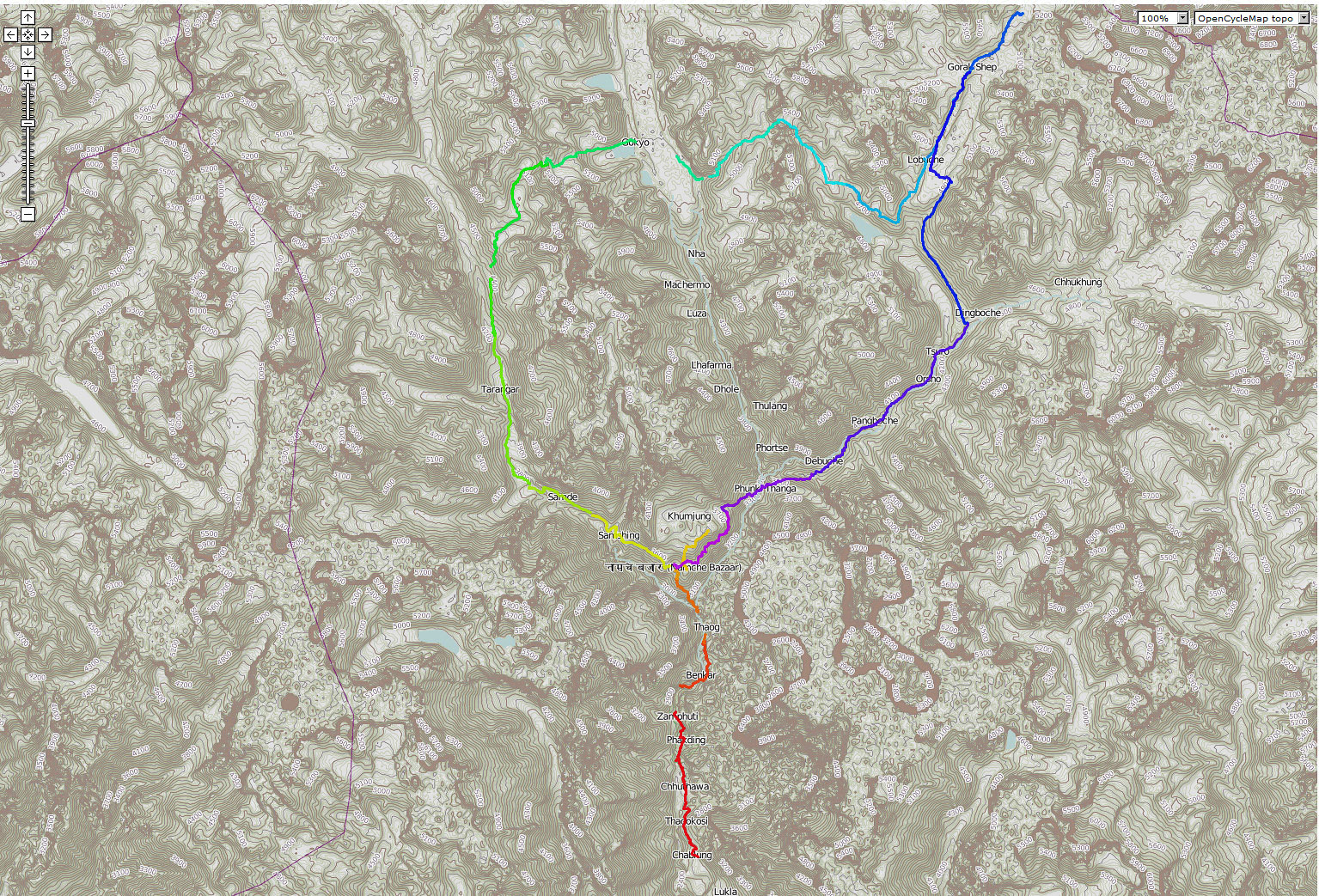 GPS Track of Everest 'The Hard Way' Trek: I compiled this map using GPSVisualizer.com and the tracks I recorded on the trip.