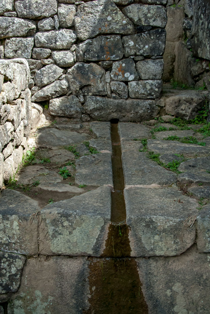 Aqueducts at Machu Picchu, Peru. The Incas harnessed a natural spring on a steep slope to the north and built this channel to supply water to fountains in the site.