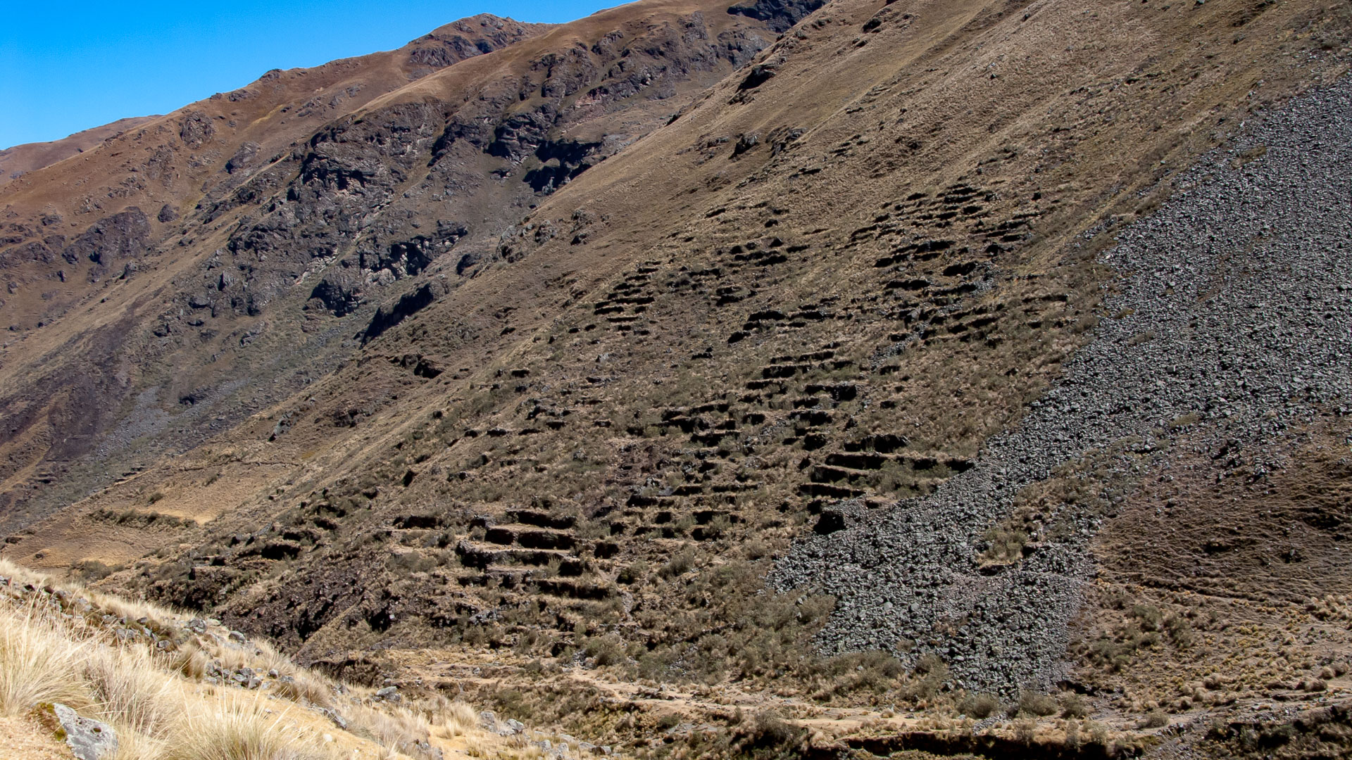 Inca ruins in the Alpamayo valley, Cordillera Blanca, Peru.