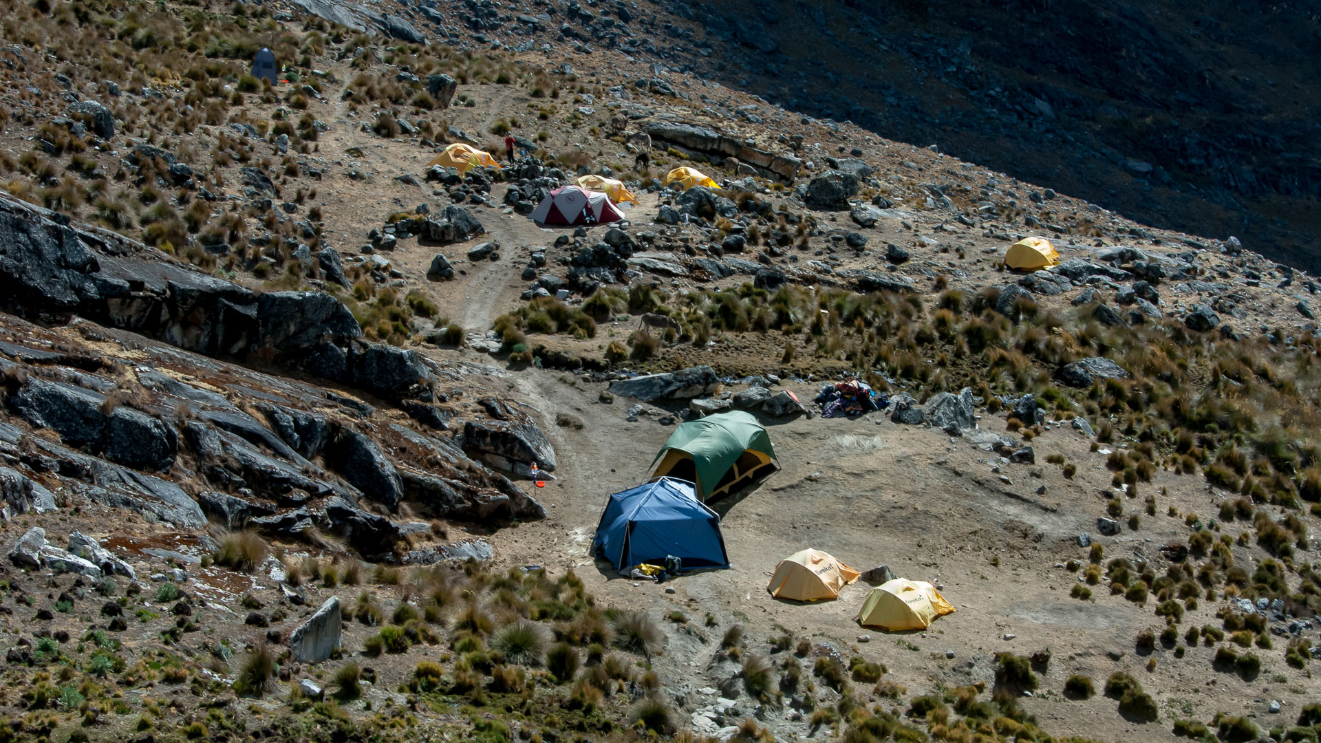 Campsite at Osururi (15,994 feet), Cordillera Blanca, Peru. This was the highest campsite of the trek.